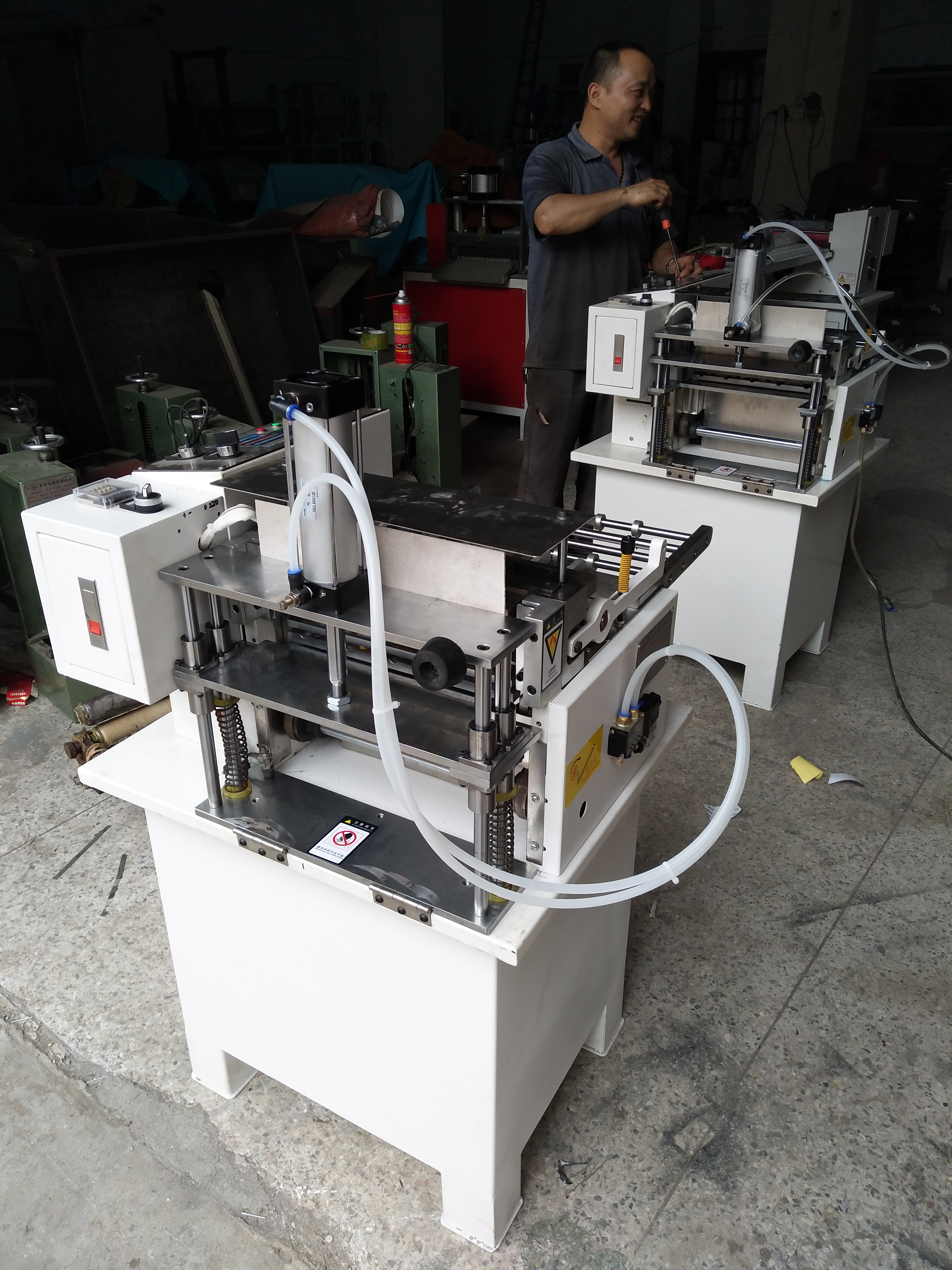 柜式切帶機適用性:有冷切熱切兩種機型 用途:本機適合于:箱包、皮具、鞋業、電子、繩帶、電子行業、汽摩配行業、電器、電機、燈具、玩具、變壓器、服裝、文具等行業。如:套管、排線、銅鋁線、彩色帶、魔術帶、織帶、安全帶、PP帶、尼龍帶、粘扣帶、棉紗帶、松緊帶、塑膠帶、拉鏈、套管、紙類、排線、小電線、金屬薄片等材料定長裁切 。